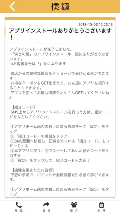 僕との麺のアプリをSNSを通じてお友達に紹介する事ができます。