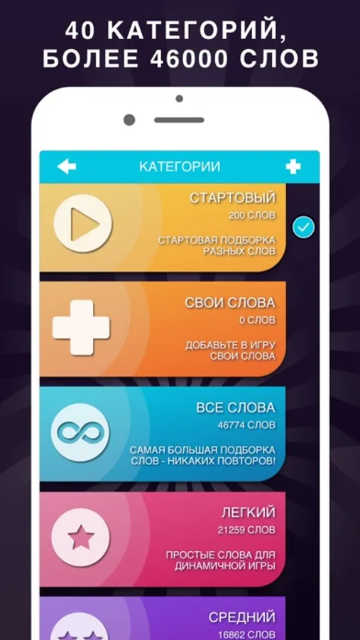► Разные режимы: настраивайте время игры, количество раундов, задания, штрафы и другие параметры