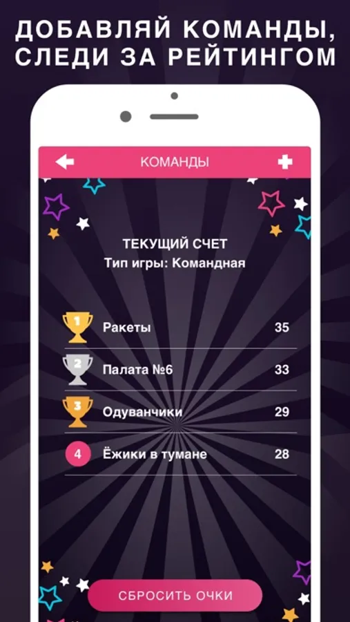 ► Добавляйте команды и следите за рейтингом