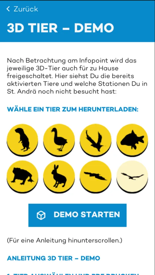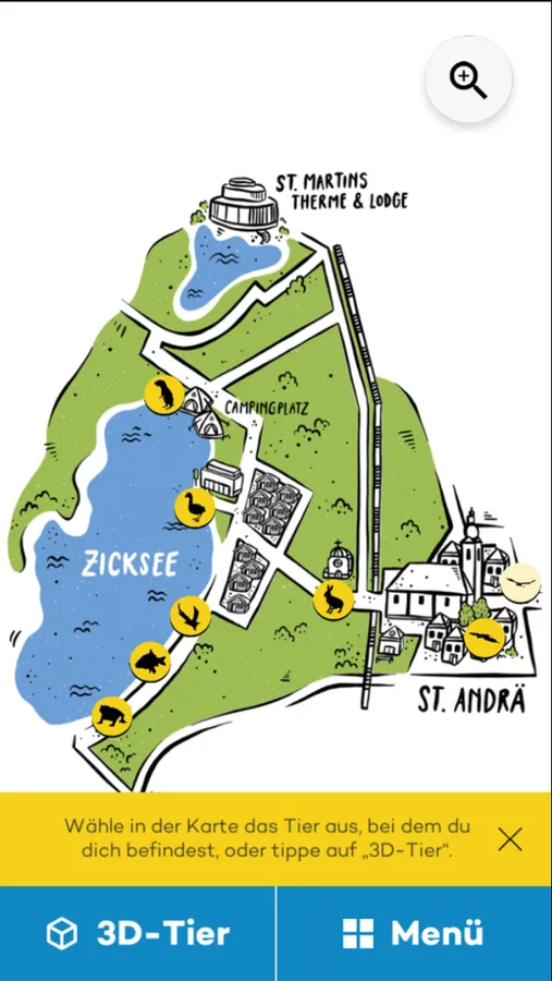 Discover 3D-animations of local animals in St. Andrä am Zicksee with augmented reality and experience them in real life. Learn about their fascinating characteristics and share pictures and videos of them with your social media contacts. Once you have watched an animal at the info point, it will also be accessible from home.