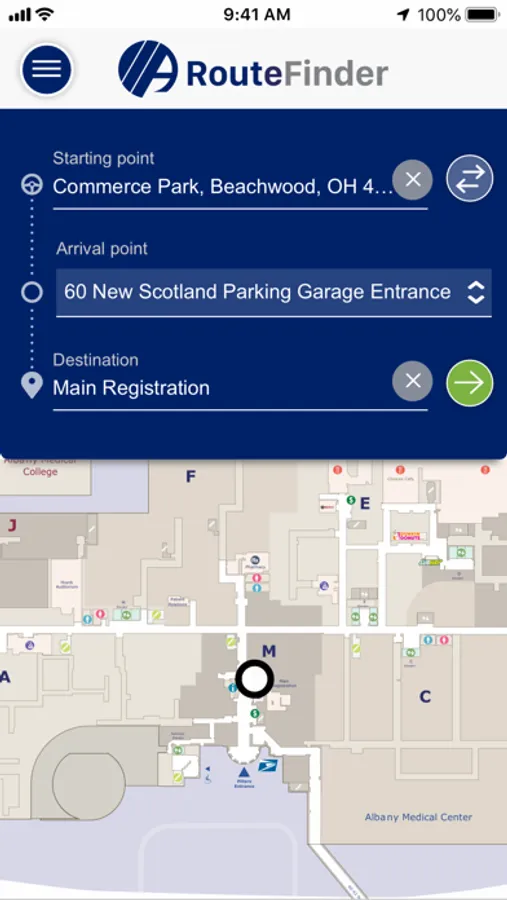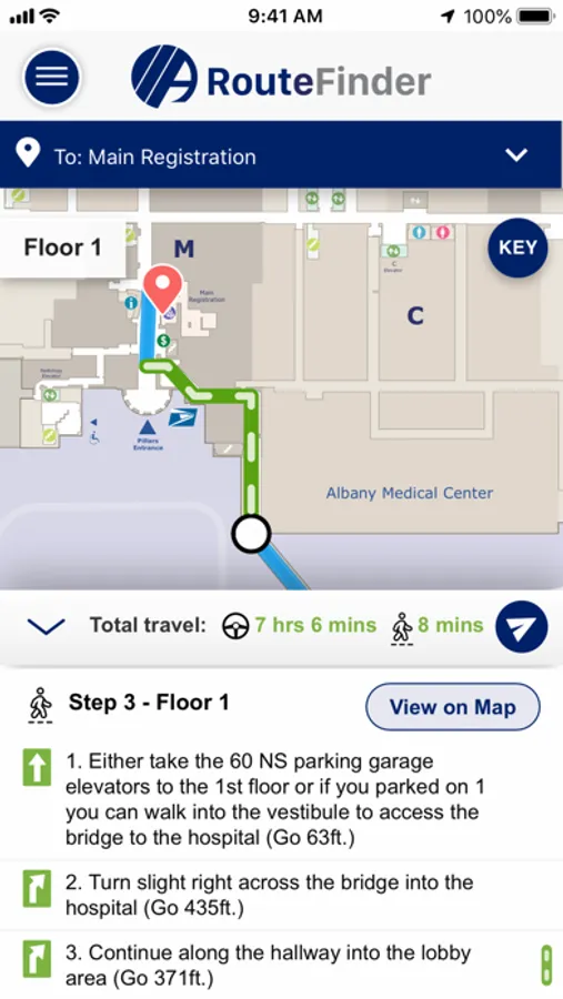 Albany Med’s RouteFinder App on your smartphone, tablet or computer offers easy-to-use maps, walking directions, driving directions and ideal parking locations for the Main Hospital Campus and Albany Med regional locations. Enjoy turn-by-turn walking directions on your iPhone with animated walking routes throughout the Main Hospital Campus, located on New Scotland Avenue in downtown Albany. Discover easy-to-use driving and parking directions for any Albany Med office location, including EmUrgent Care offices and Laboratory Services locations. Go to amc.edu/routefinder to use the RouteFinder App. You can access RouteFinder by downloading the app to your phone in the Apple App Store.