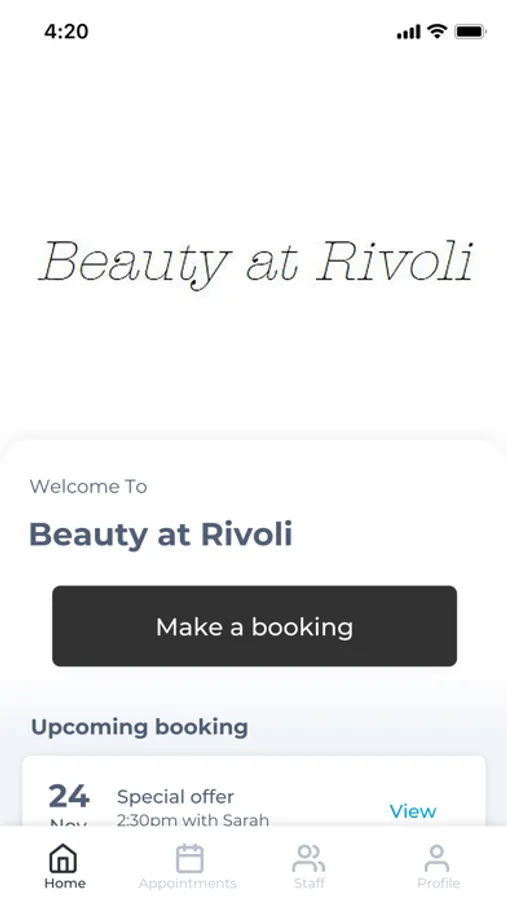 The Beauty at Rivoli app makes booking your appointments and managing your loyalty points even easier. You're just a few taps away from feeling good and looking great!