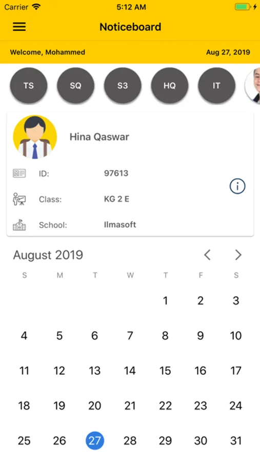 8- The Parent can see past or upcoming events on the noticeboard with notification if any notice is added to the noticeboard.