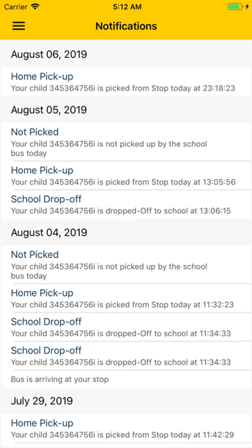 3- Parents can get a pickup and drop off timings of their children in buses along with instant notifications.