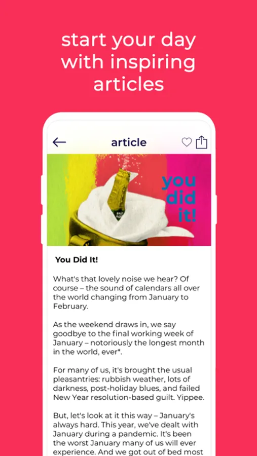 - Read inspiring, motivational or entertaining (we’re dead funny) articles whenever you need to take five minutes