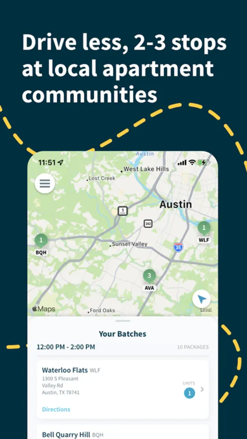 Delivery Partner shifts are typically only 2-3 stops at local apartment communities within your local area, so you won’t need to spend an entire shift driving.