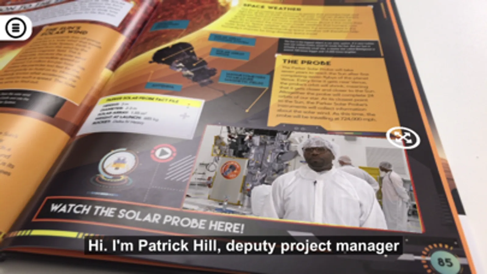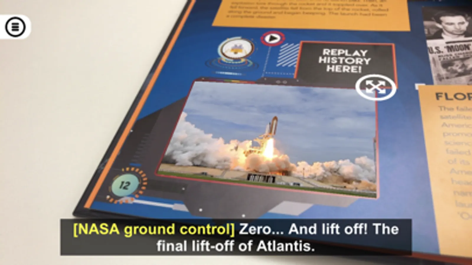 - Activate amazing archive videos of spaceflight that appear to play on the pages of the book.