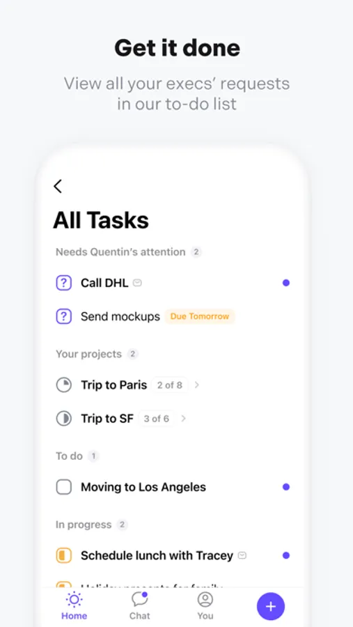• All your execs in one app: tap the exec picture to view another one's tasks list
