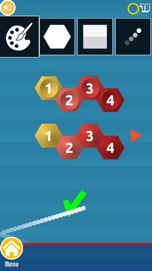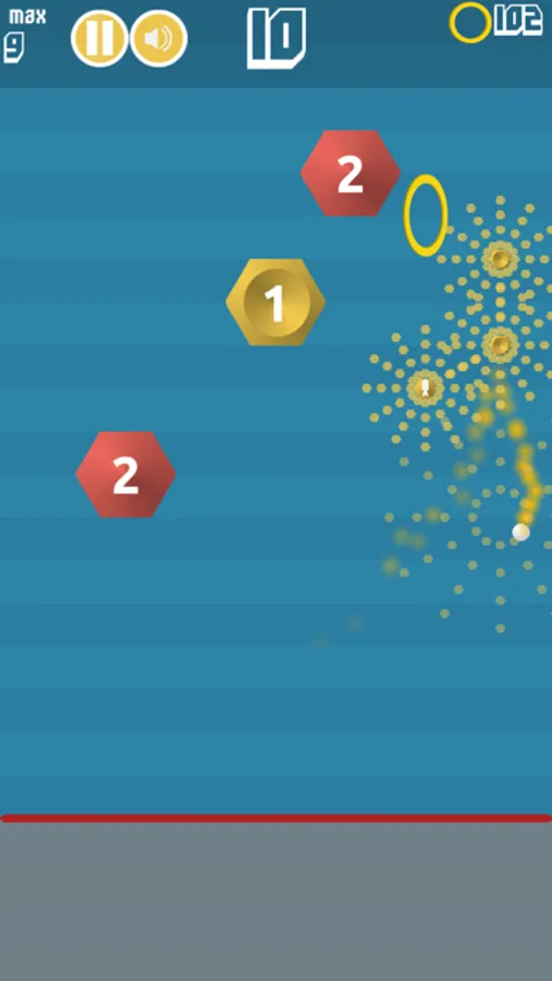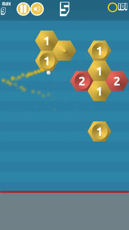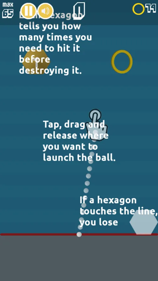 Each turn you have to throw a ball that bounces and makes contact with as many hexagonal bricks as possible. Each hexagon has a number that indicates how many times it must be hit to destroy it. The hexagons go down one row each turn, if you do not destroy them they will come down and you will have lost.