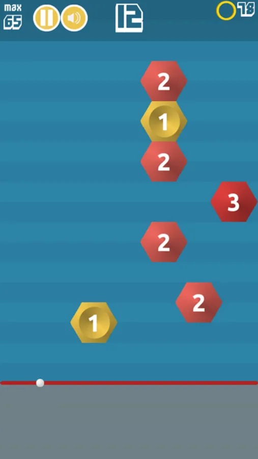 HEXA BOUNCE is a game of strategy and spatial ability. The game consists in avoiding that the hexagonal bricks that appear at the top of the screen and go down reach the bottom line.