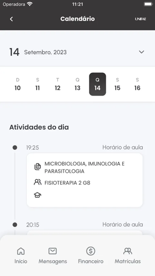 - Acompanhar seu calendário acadêmico, incluindo horário de aulas e datas importantes para a instituição