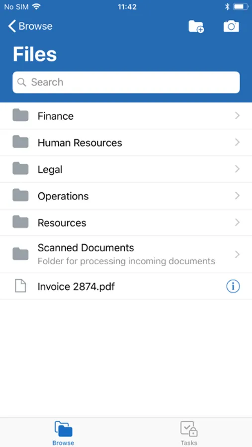 • Instantly capture documents as photos, and videos with sound, also uploading documents from other iOS applications