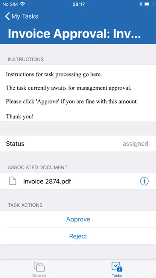 Efficiently share documents as part of a business process such as Accounts Payable or Expense Approval using task management workflow templates.