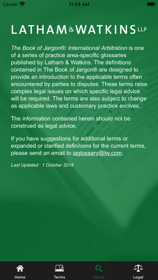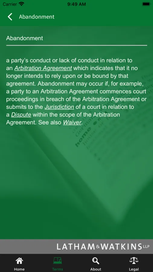 The Book of Jargon® – International Arbitration is one of a series of practice area-specific glossaries published by Latham & Watkins. The definitions contained in The Book of Jargon® are designed to provide an introduction to the applicable terms often encountered by parties to disputes. These terms raise complex legal issues on which specific legal advice will be required. The terms are also subject to change as applicable laws and customary practice evolve.
