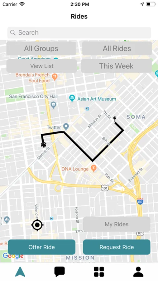 You can request and offer rides, and accept rides and requests... all on our intuitive map view!