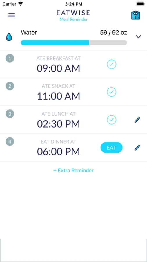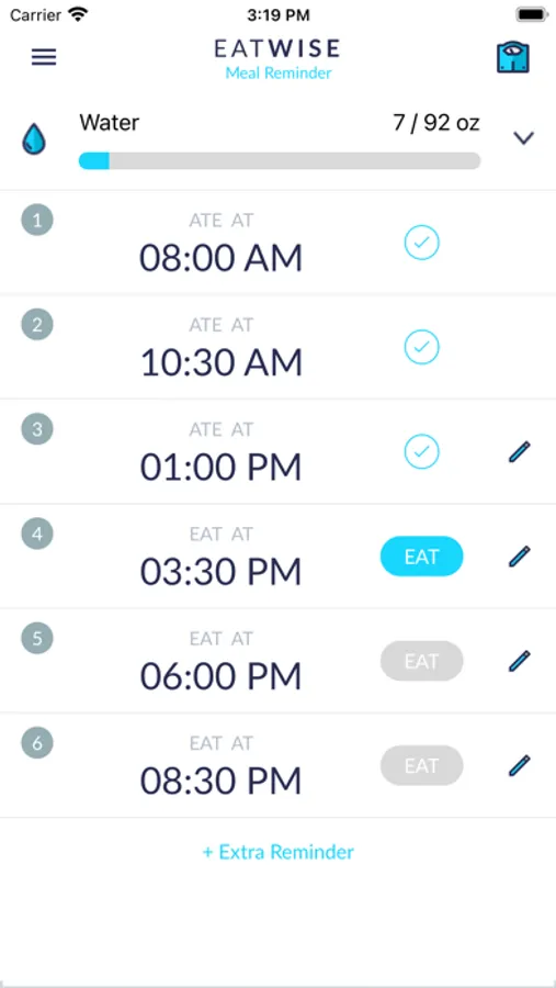 EatWise is the best meal reminder App. Now with water tracking built-in. It's well thought out and has all the functionality to help you be successful in your journey. We take the remembering off your shoulders!