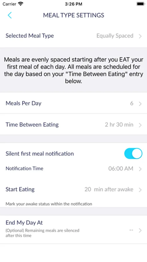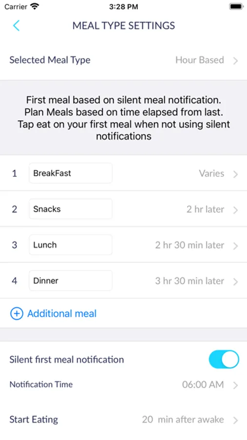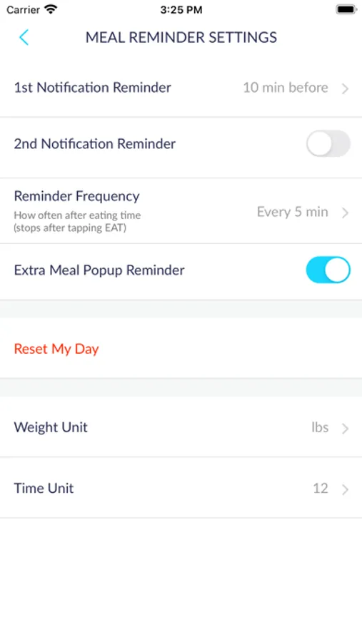 3. Set when and how many reminders you would like before and after a scheduled meal