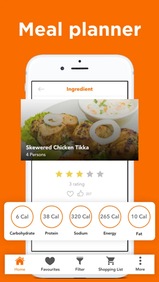 - There is a nutrient profile to help you keep check of the amount of Energy, Fat, Carbohydrates, Protein, and Sodium in each recipe.