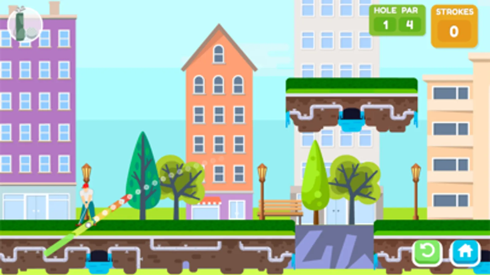 The most fun golf game is here! Show your skills as a golfer and discover the wonderful scenarios offered by the game: cities, hills, islands, forest... choose the one you like the most!