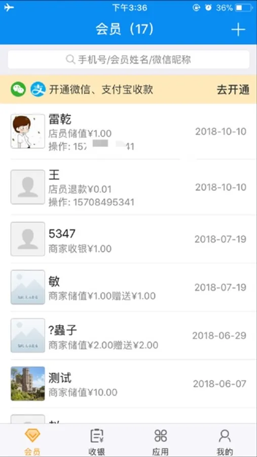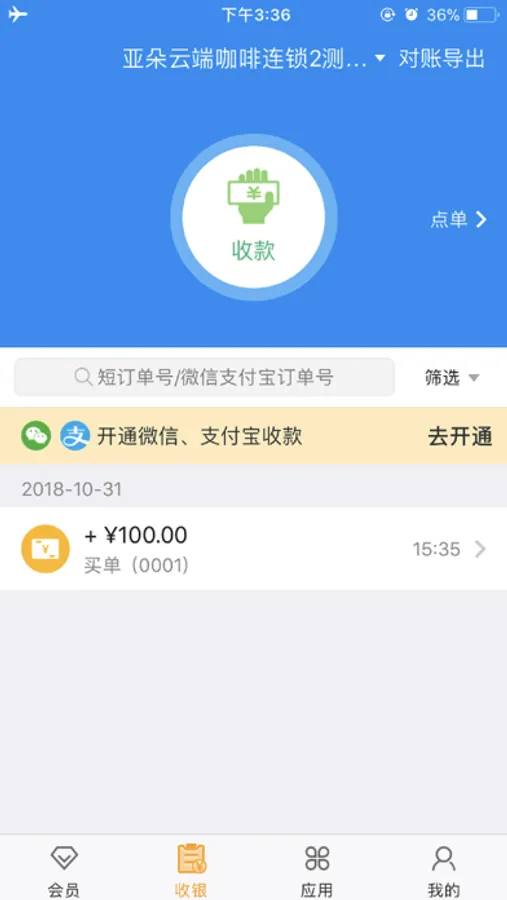 商家收银支持POS刷卡、微信扫码、支付宝扫码、现金记账、会员卡余额支付。