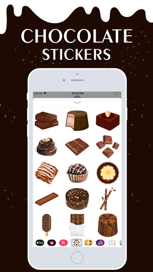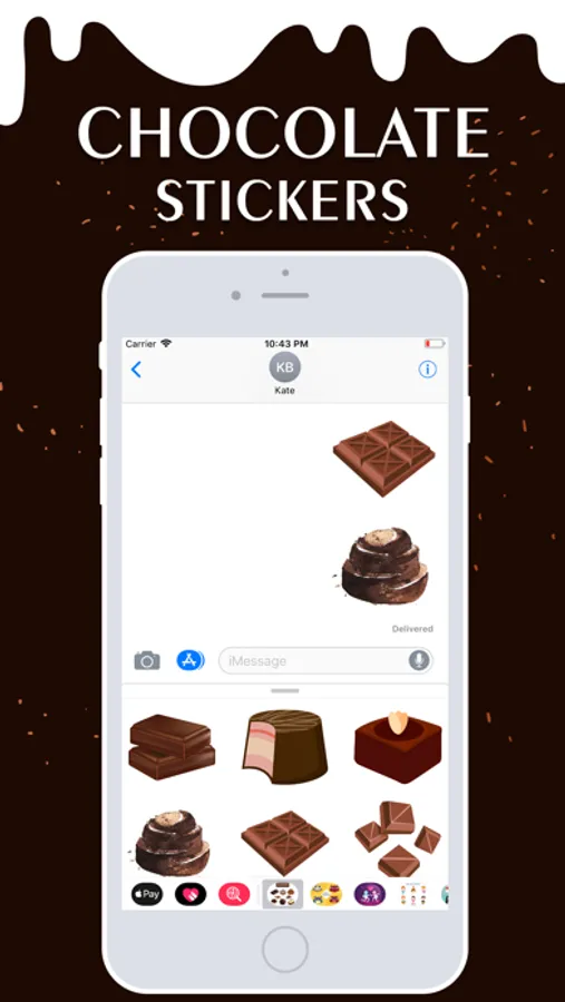• Tap the icon on the lower left corner and then the plus icon to access the App Store for iMessage. Tap Manage tab and find Chocolate Stickers to add it.