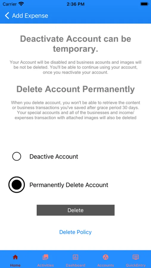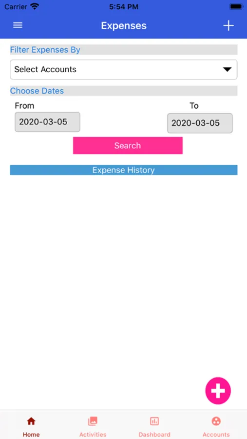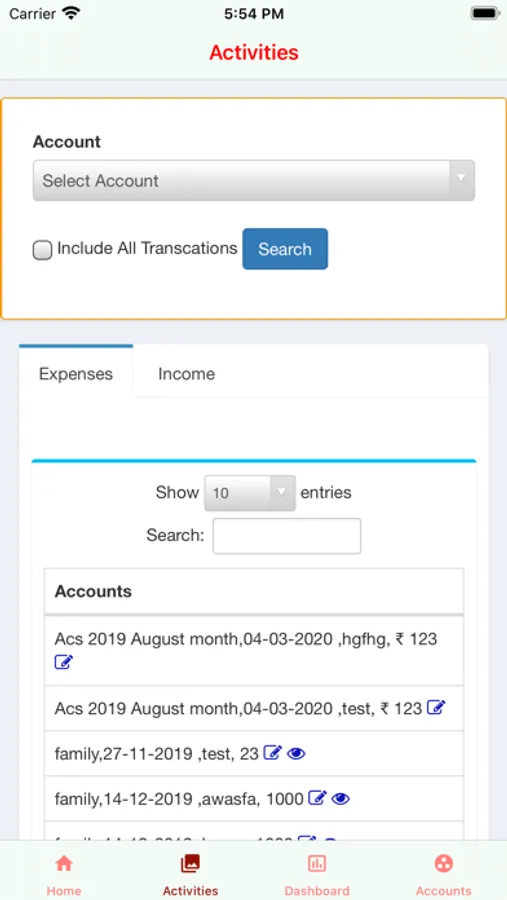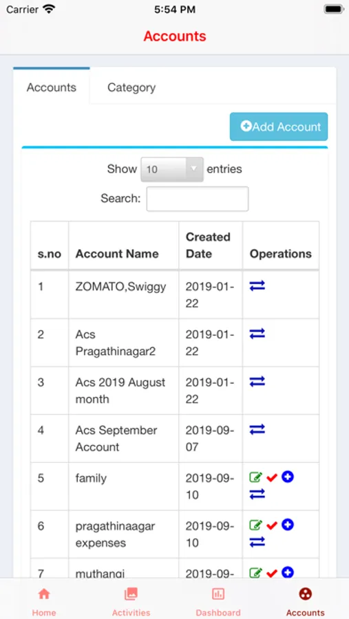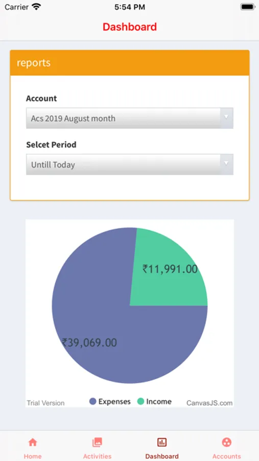 and piechart. The user can choose the account type to which it is related to it may be bank or else it can be home etc. The user can also choose the category in which