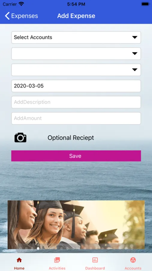 he has spent that is electricity bill, maintenance bill etc. The user can give description and the total amount and upload the details.