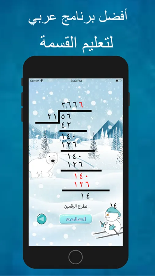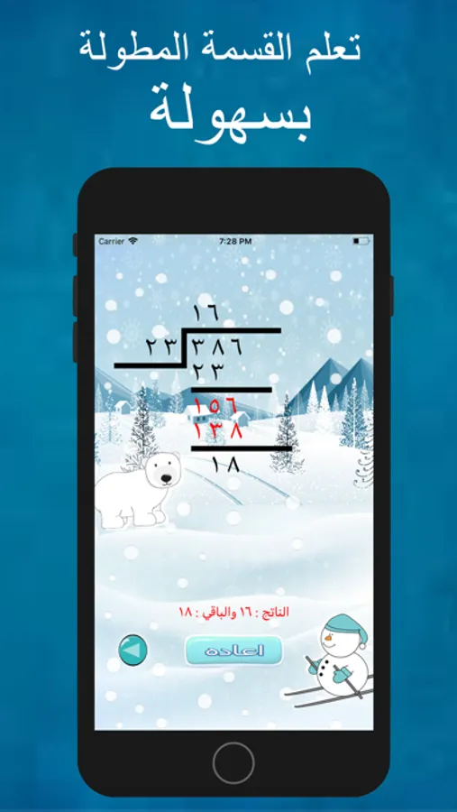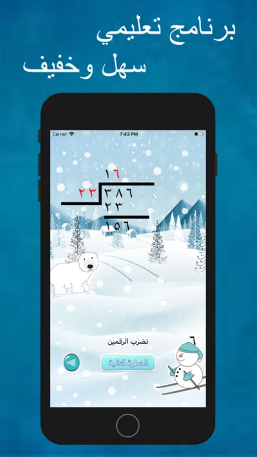 برنامج تعليمي سهل وخفيف لتعليم قسمة رقمين مكونين من ثلاث خانات.