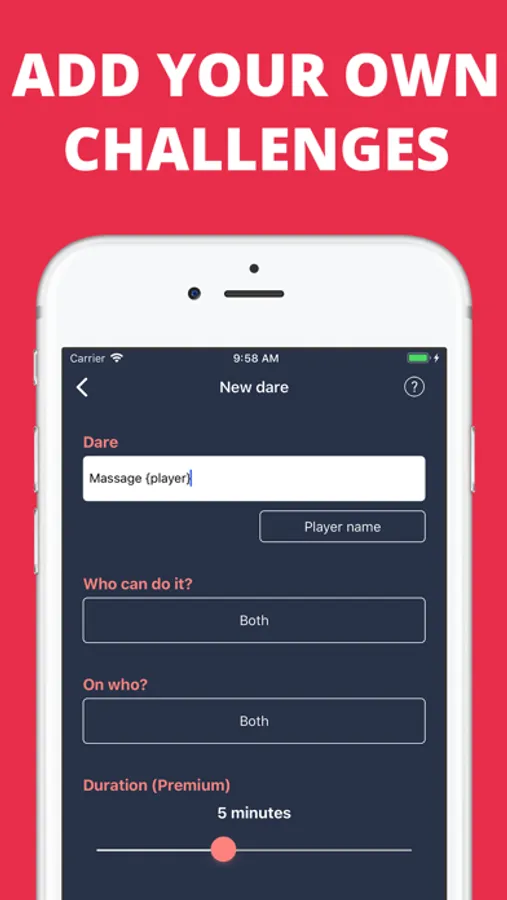 • Add your own dares and categories
