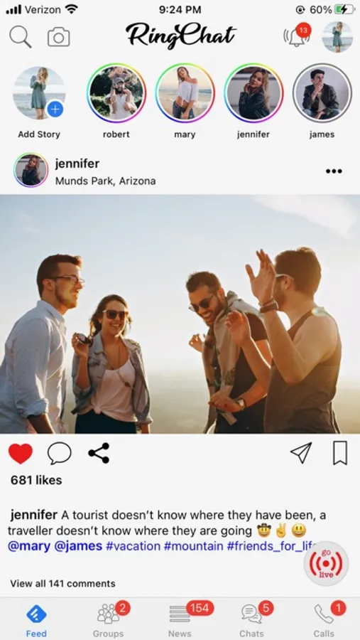 RingChat is easy to use, fun, and engaging. If you have a phone number and internet connection, you can make free voice and video calls to any user around the world. You can send messages, pictures and videos to users privately both on your phone or on the website. You can create live streams, post videos and pictures tweaked with filters, and see all types of posts from all your friends (their struggles, updates, memories etc.). You can comment directly on posts and delete offensive posts. You can also block or delete users you do not want to interact with.