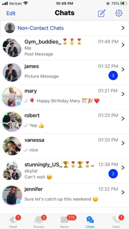 GROUP CHAT: Create groups with family and friends and chat privately with them.