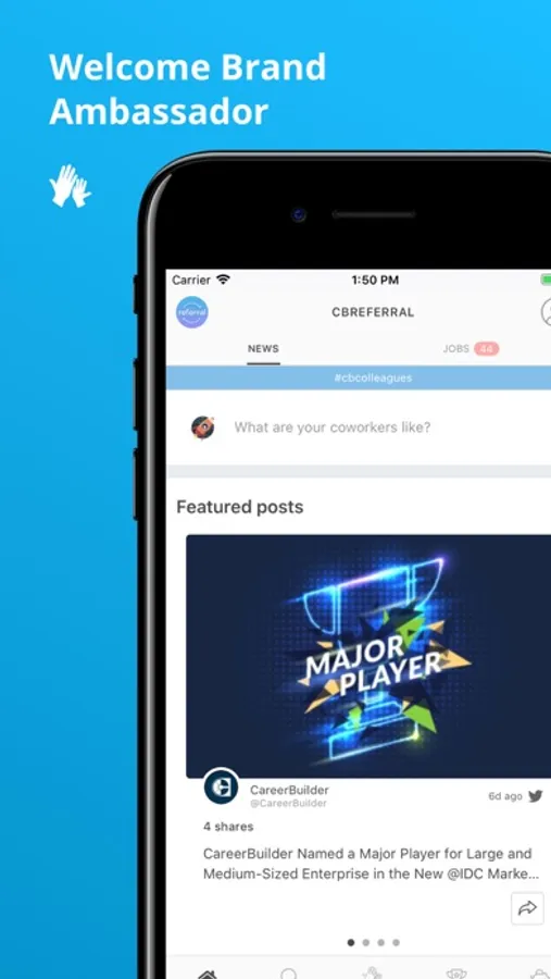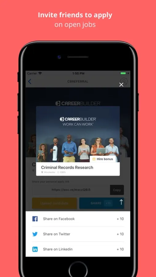 CBReferral allows you to communicate internal career opportunities through your social network and help grow the talented CareerBuilder family. Share our stories, insights, and news on your social media channels with a single click.