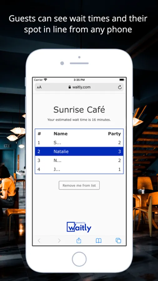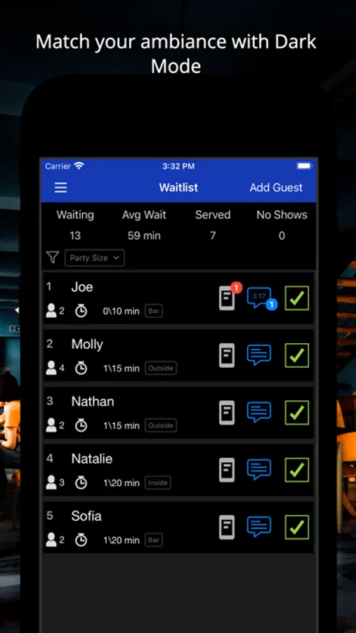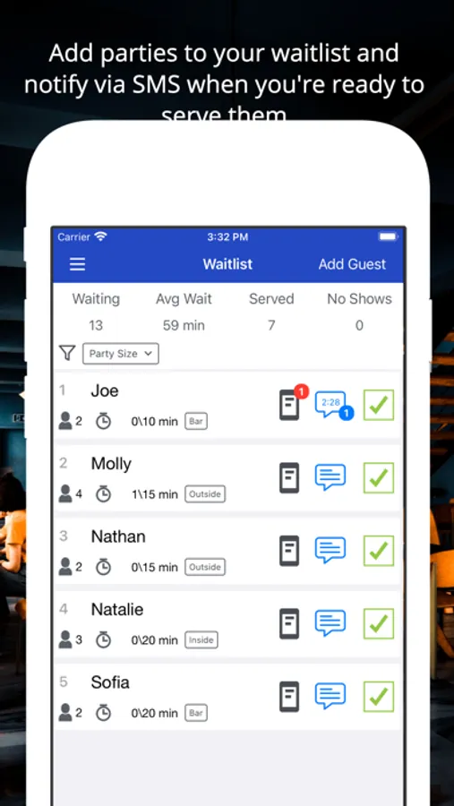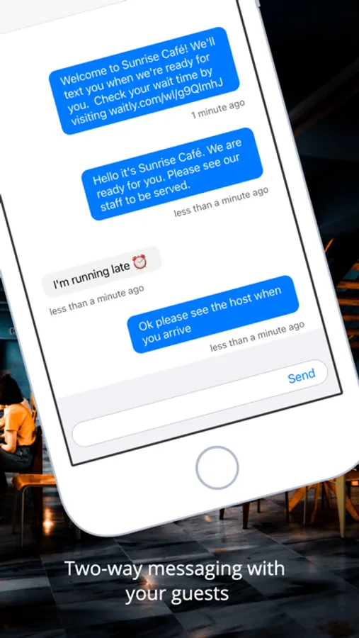 • Add guests to your waitlist and send notifications via SMS