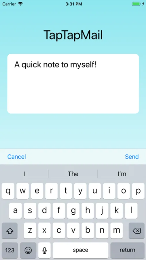 From the TapTapMail app home screen, you can type a note and tap Send. The note will be emailed to you. There is no quicker way to email yourself a reminder!
