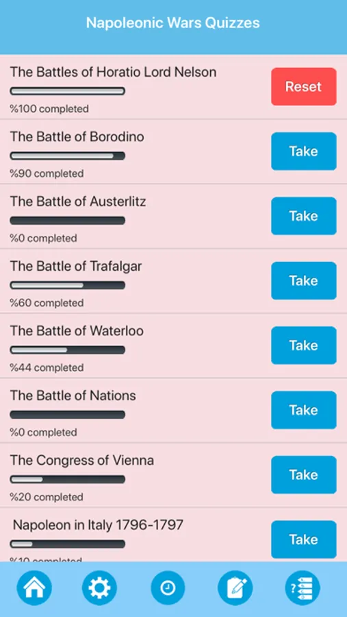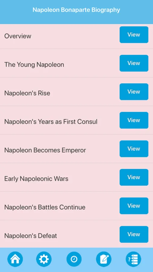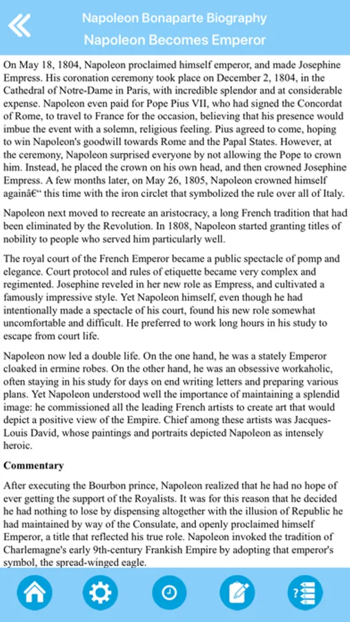Get the major events and battles of Napoleonic Wars knowledge using an intuitive and cool quiz interface. In the meantime learn about Napoleon Bonaparte's life using our application. A great way to study about military history of europe that took place 200 years ago.