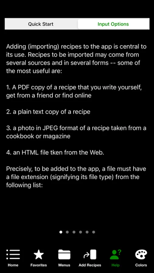 User may add recipes to the app in many ways: as a digital file created elsewhere, scanned from a printed source, or written directly in the App. Digital files may be plain or rich text files, PDFs, images (JPG) or even HTML files. Detailed instructions are given in the Help file for many types of file input. Recipes composed on the iPhone or iPad (Pages, Notes, ...) may easily be converted to PDF format and added to the app. Scanning is done right in the app using the built-in editing. The app contains an editor for composing recipes and then saving them in the app.