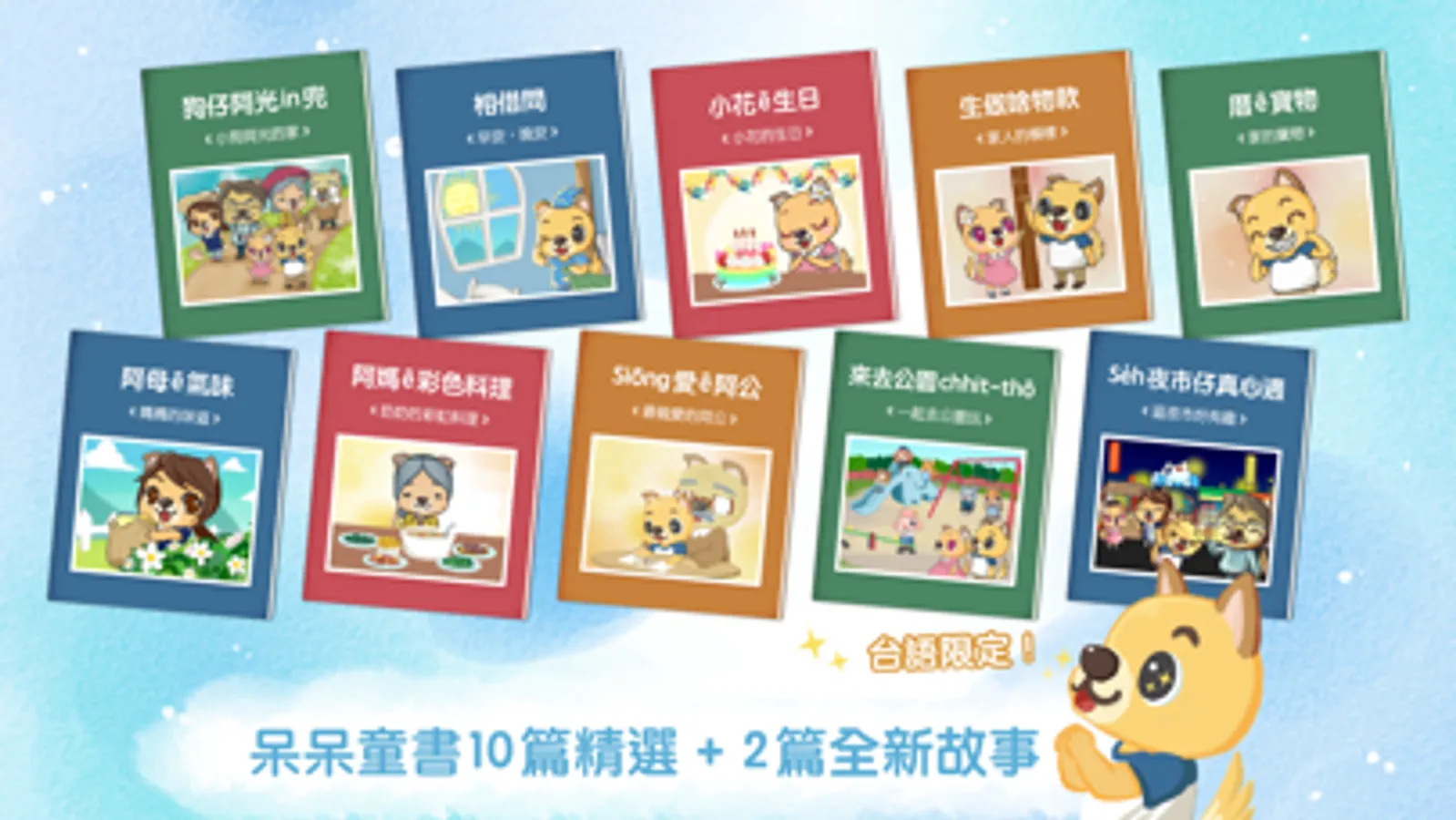 12 篇不同主題的互動式有聲繪本,將帶給孩子充滿台灣味的生動閱讀體驗。
