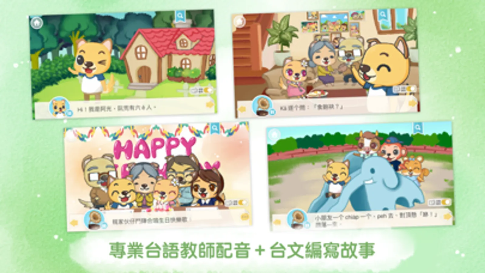 對於年齡較大的孩子,「讀故事」模式中隱藏許多小動畫讓孩子們探索,獲得更多樂趣;另外也提供了對應台語配音的漢羅字幕,大人們可以跟著孩子一起學習。