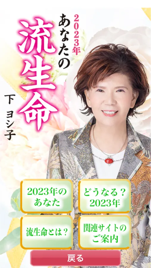 テレビ番組「ほんとにあった怖い話」でもおなじみ、Youtube「下ヨシ子の心霊研究所」でも大人気のスーパー霊能力者・下ヨシ子があなたの運勢を予知します。混沌とした昨今、2023年はどんな1年になるのか!? あなたと大切な人の運命は……。ぜひ本アプリでお確かめください。
