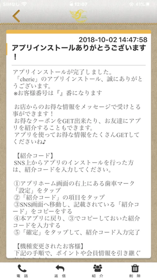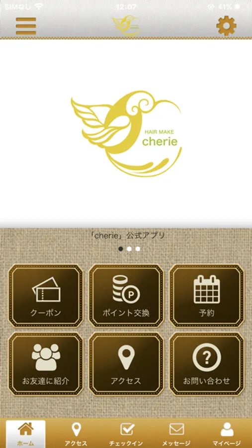 このアプリでは、cherieの最新情報の受け取りや便利な機能を使う事ができます。