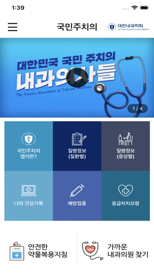여러분에게 올바른 건강정보를 제공하고, 가까운 내과의원을 알려드리는 대한내과학회 “국민주치의” 앱을 소개합니다.