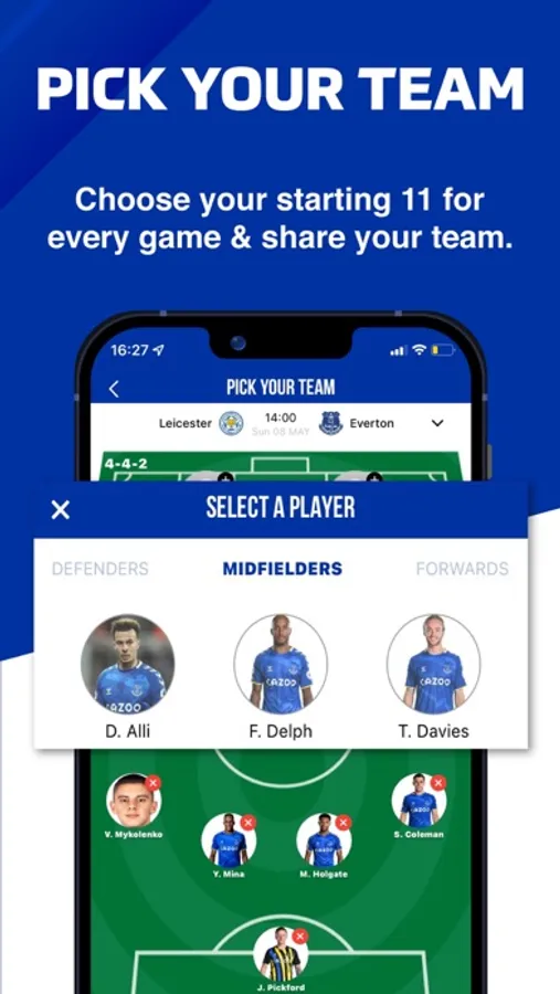 Choose your starting 11 for each Everton fixture on our line-up builder and share with your friends socially.