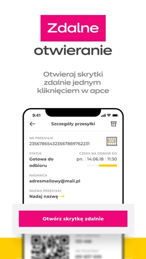 Jedną z głównych funkcji aplikacji jest usługa zdalnego otwierania skrytek, która pozwala na odbieranie i nadawanie przesyłek bez konieczności korzystania z ekranu urządzenia Paczkomat. Kliknij w przycisk „Otwórz skrytkę zdalnie”, a Twoja skrytka otworzy się sama!