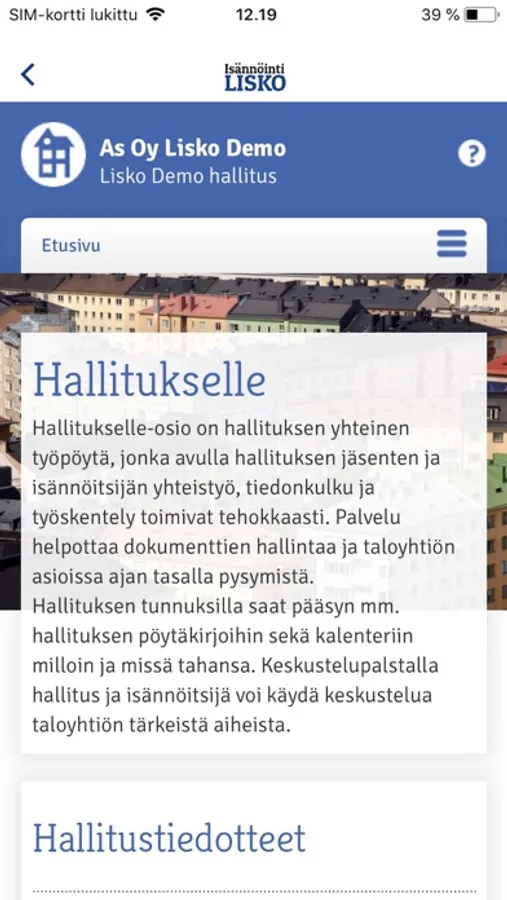 Isännöinti Lisko Oy:n sähköinen asiointikanava tuo taloyhtiösi tärkeimmät tiedot ja yleiset asumiseen liittyvät asiat helposti käyttöösi.