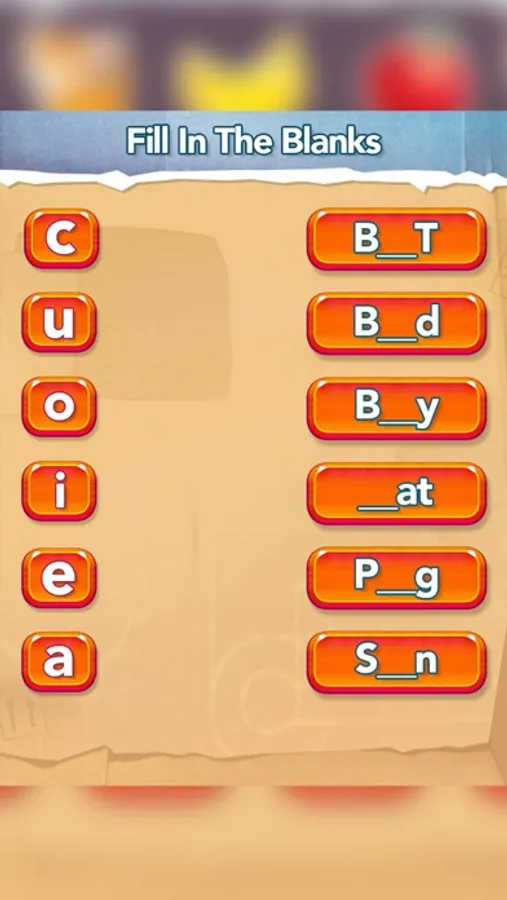 And the last category is, fill in the blanks - which has basic spellings - kids have to match the correct alphabet to form spellings.