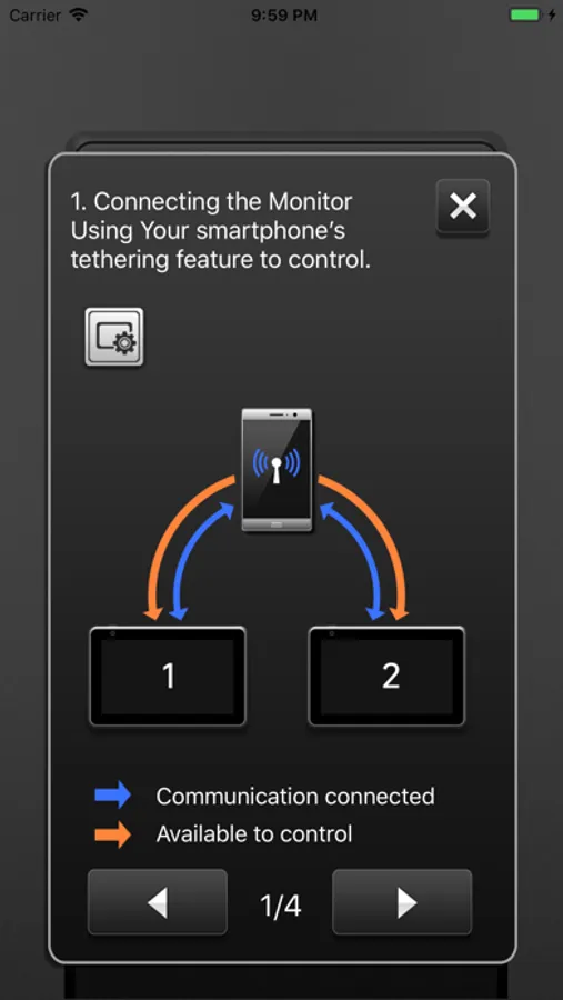 4. Connectable devices change to a white L / R button and the connected device is displayed in orange.