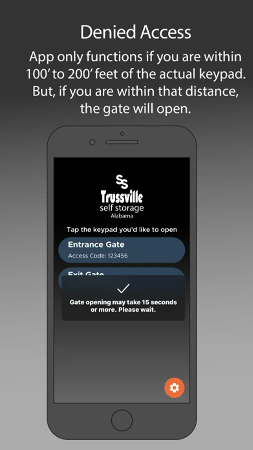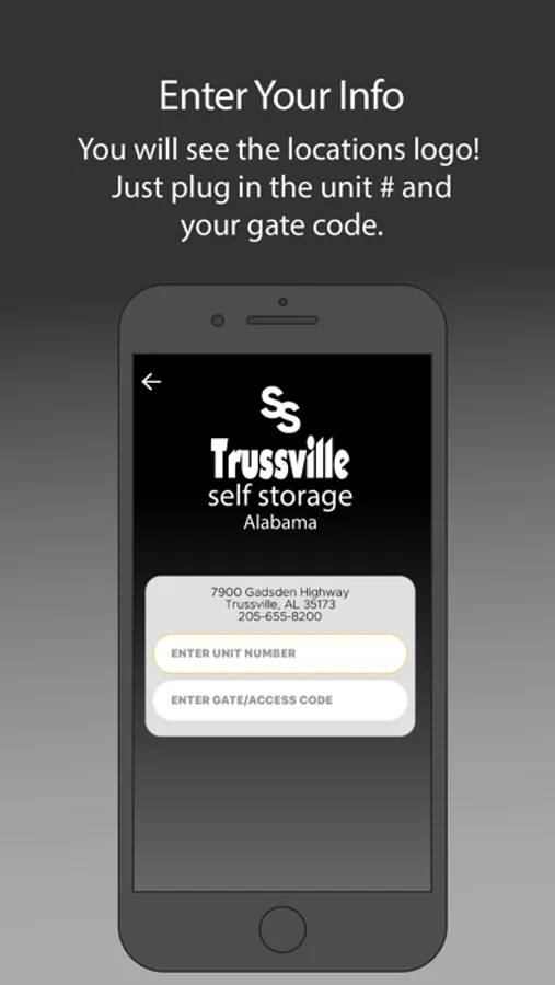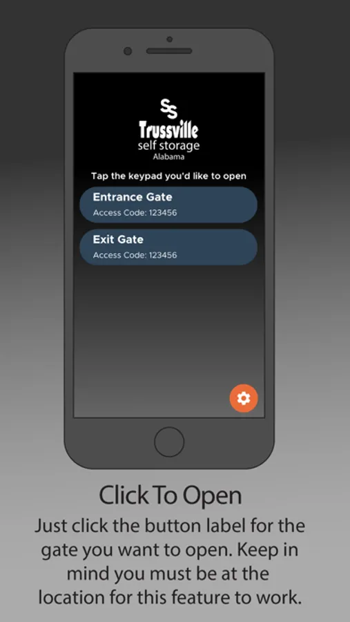 Make life easy! Simply open the Self Storage Gate Access App and click open to open the entrance gate at your location. It's really that simple.