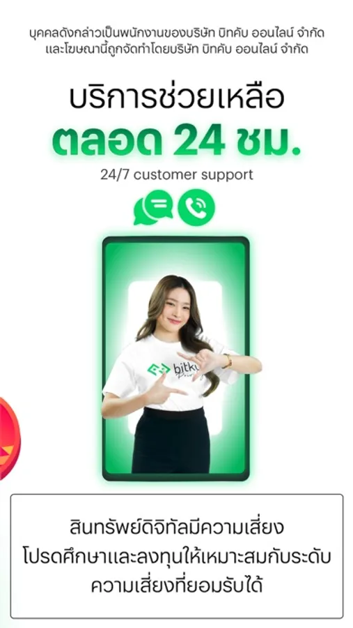 Bitkub Market is always running 24/7 and so is our customer service! Interact with our support in EN/THAI via the integrated chat box at any day or time.