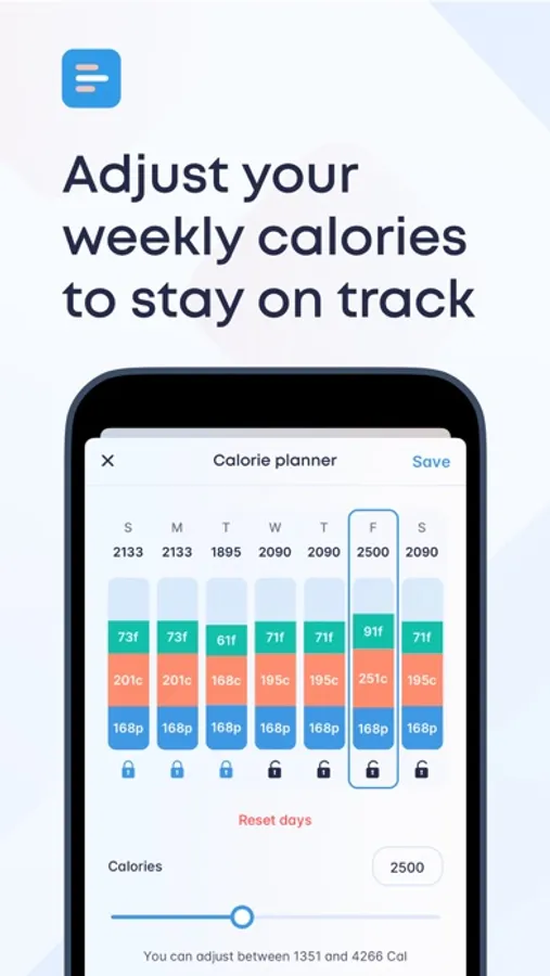Another feature that makes Carbon unique is the diet planner. Want high and low-calorie days rather than eating the same foods every day? Use the diet planner to set up your week and stay on track. Overate on one day and not sure what to do with your nutrition plan for the rest of the week? Adjust the diet planner to account for what you overate and Carbon does the rest!