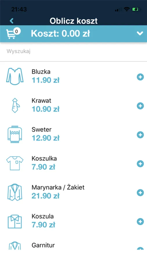 Cennik prania prezentowany w sklepie jest wyłącznie poglądowy - zapraszamy do zapoznania się z cennikiem w aplikacji.